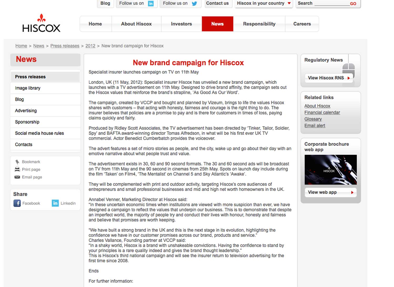 WHAT'S THE STORY? In 2008 we helped VCCP win the Hiscox Insurance pitch and established an enduring brand identity and tone of voice.